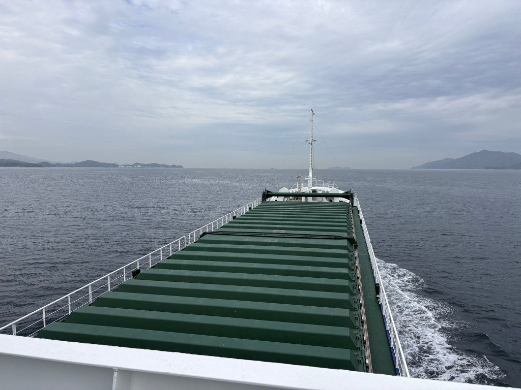前日には久しぶりに乗組員と再会し夕食を共にしました。新しいこううん丸に初乗船して感じたことは・・・航海計器の物理ボタンがなくなり操作に戸惑い気味でした、何とか若い世代についていかなければと思います。